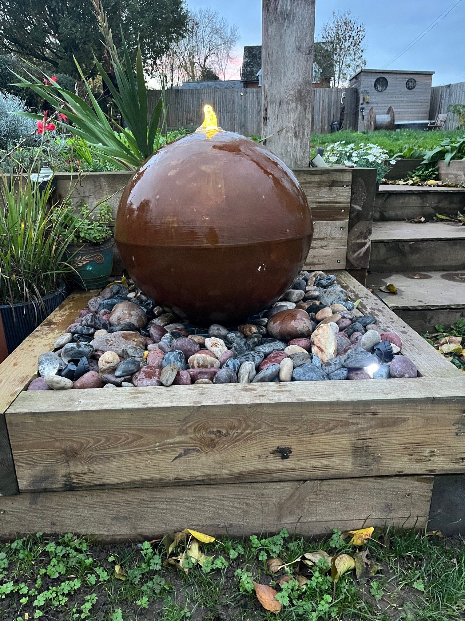 Supplied as a complete, ready-to-install water feature, this set includes a concealed reservoir, support grid, 1000 LPH pump, and integrated light kit. By day, the bowl provides a tranquil reflective surface; by night, the gentle illumination creates a stunning effect as light flickers through the moving water, bringing atmosphere and warmth to your outdoor space.